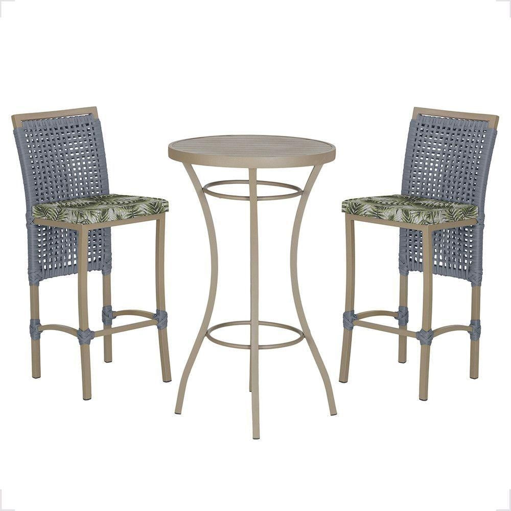 Mesa Bistrô 2 Banquetas Roma Corda Náutica Estofado 5 Trama Prata