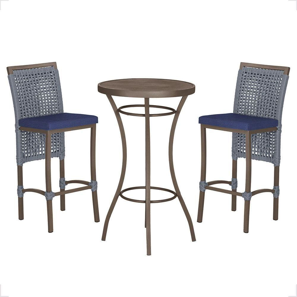 Mesa Bistrô 2 Banquetas Roma Marrom Corda Estofado 10 Trama Prata