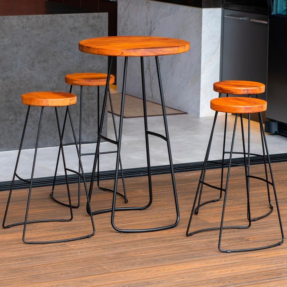 Mesa Bistro Bar E Kit 04 Banquetas Altas Aurum Peroba Preto Dhom Peroba Preto