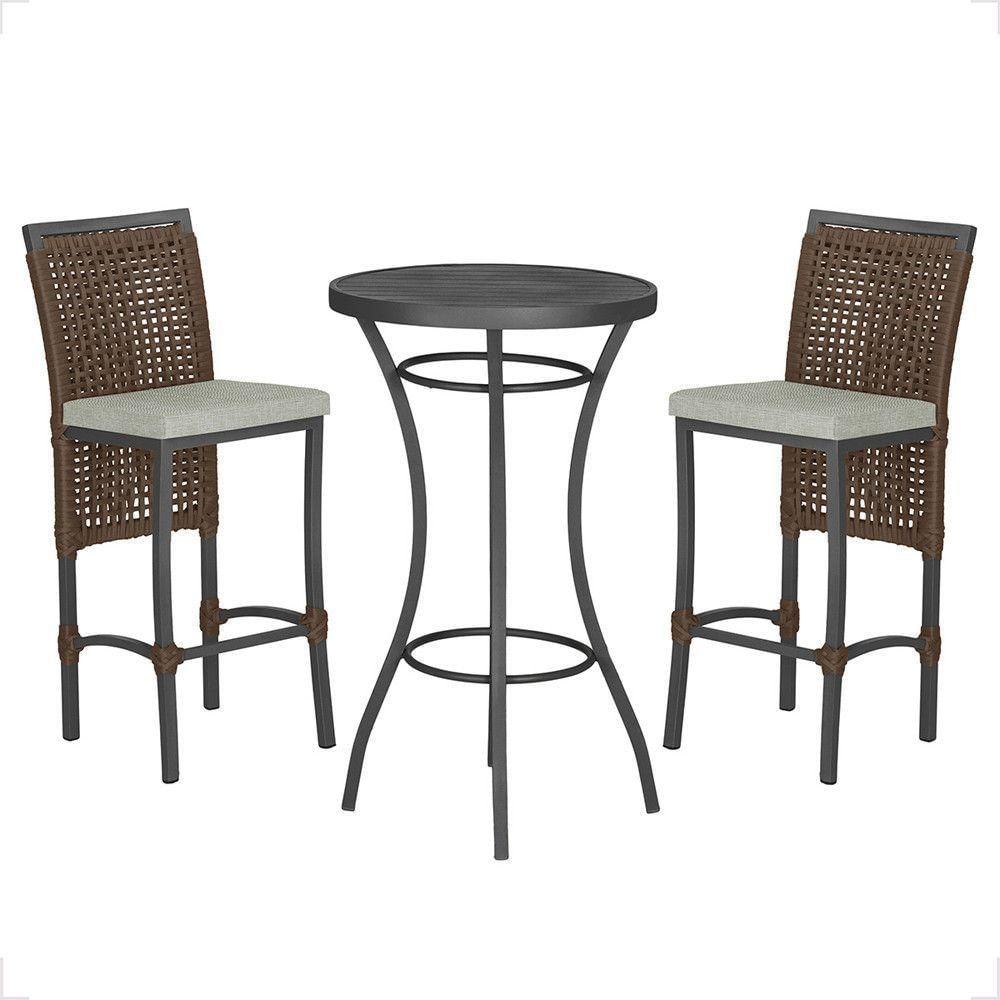 Mesa Bistrô Com 2 Banquetas Roma Preta Corda Náutica 3 Trama Marrom