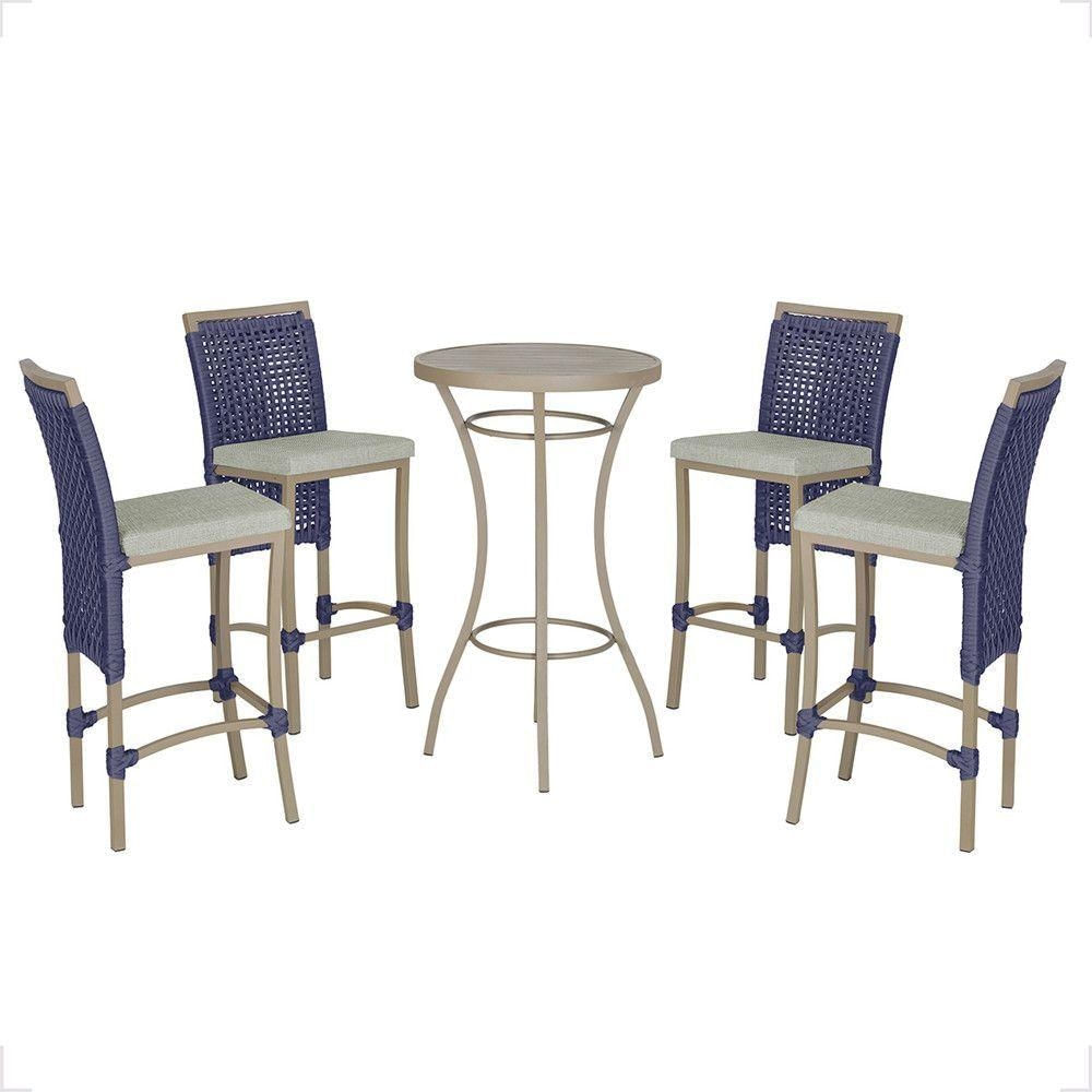 Mesa Bistrô Com 4 Banquetas Roma Fendi Corda Náutica 3 Trama Azul
