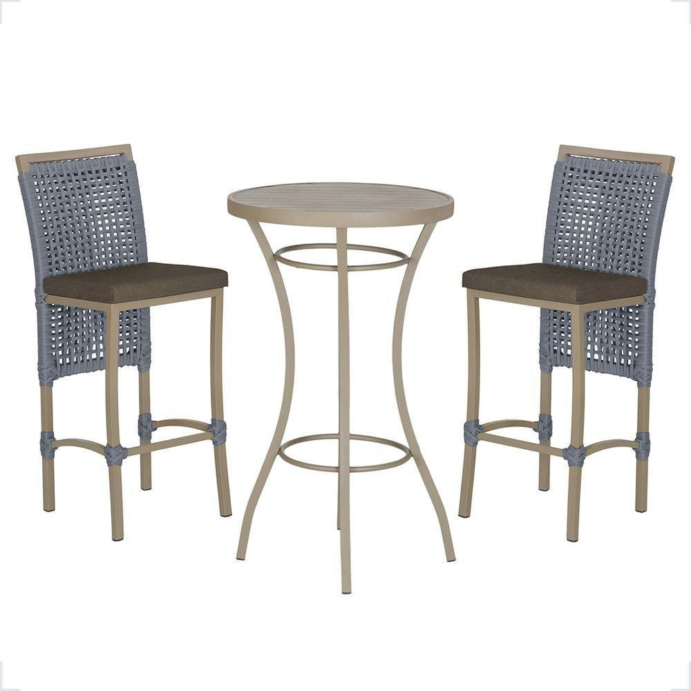 Mesa Bistrô E 2 Banquetas Roma Fendi Corda Estofado 9 Trama Prata