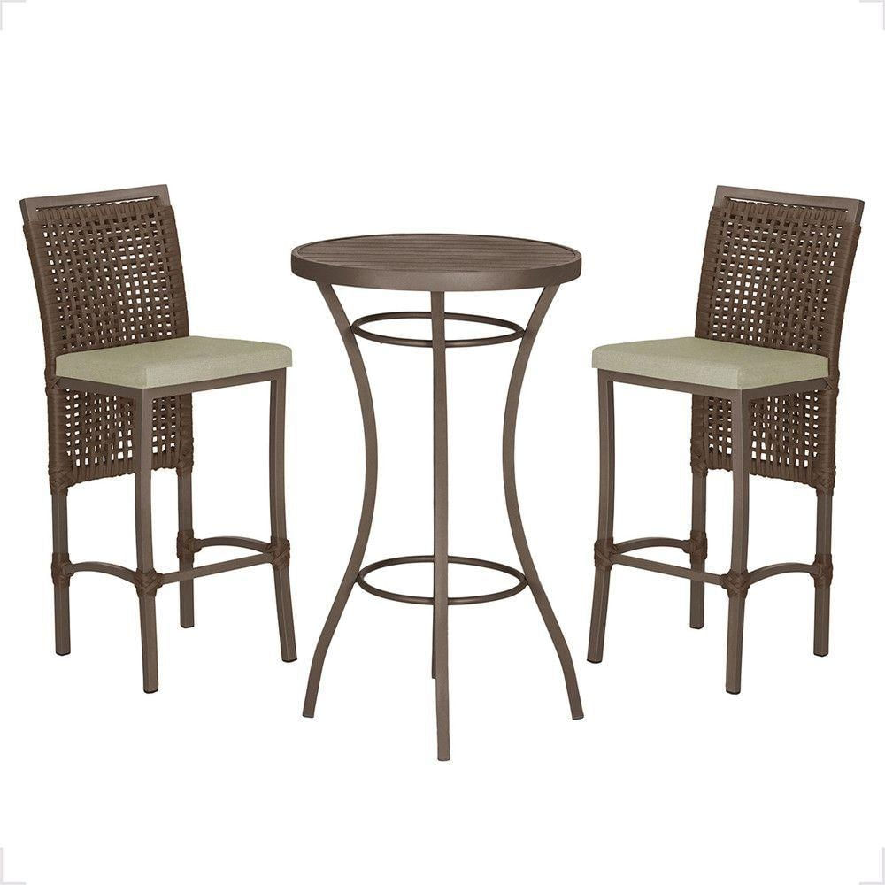 Mesa Bistrô E 2 Banquetas Roma Marrom Corda Estofado 7 Trama Marrom