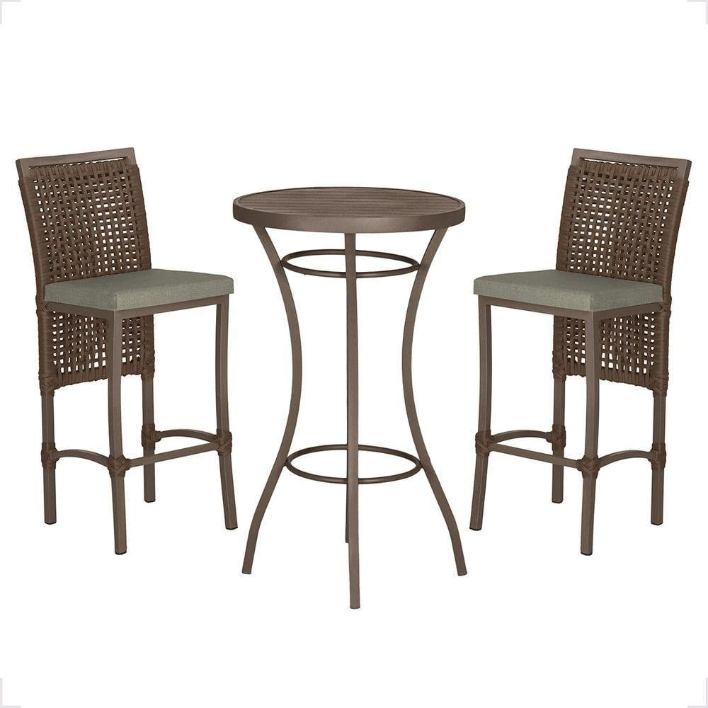 Mesa Bistrô E 2 Banquetas Roma Marrom Corda Estofado 7 Trama Marrom