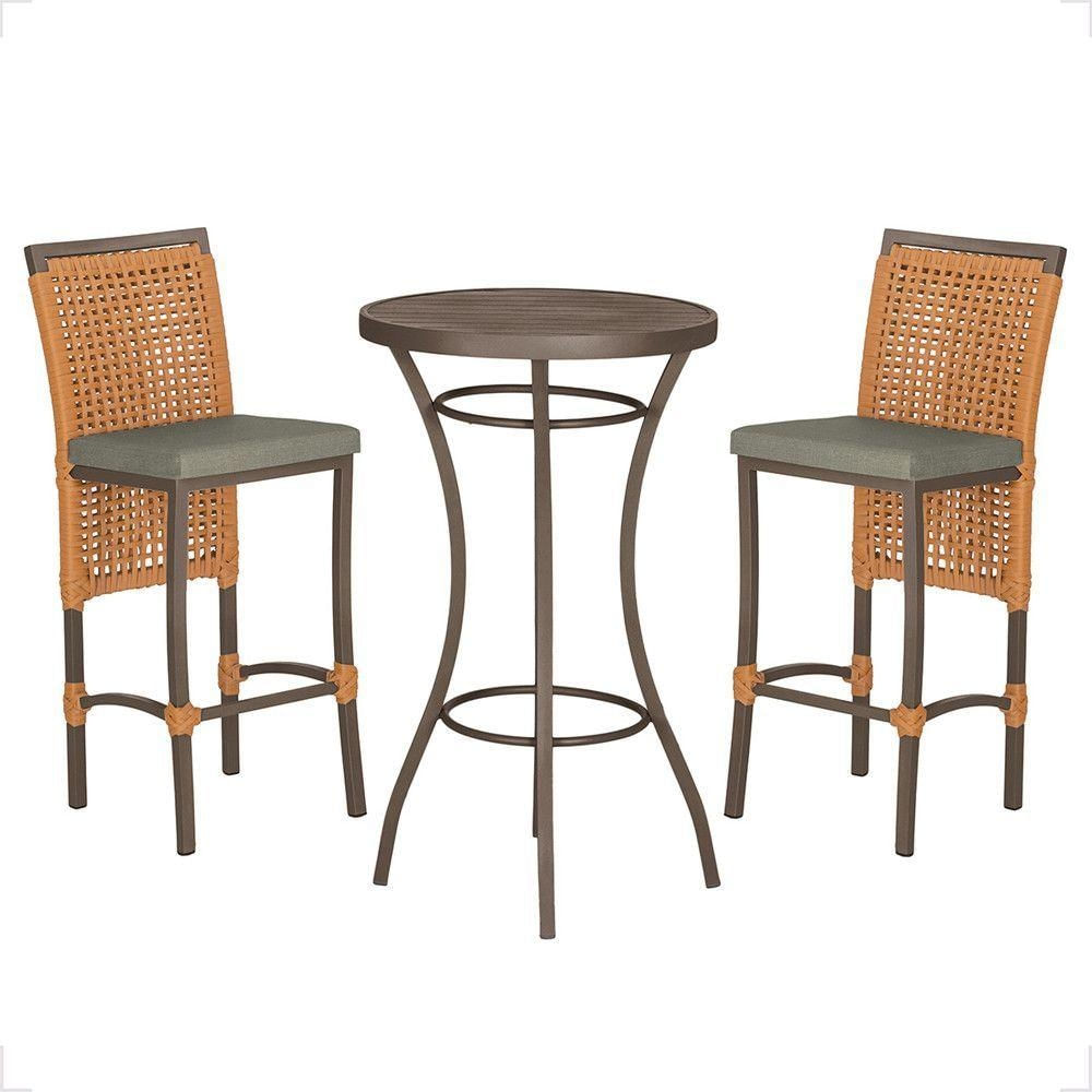 Mesa Bistrô E 2 Banquetas Roma Marrom Corda Estofado 7 Trama Terra Cota