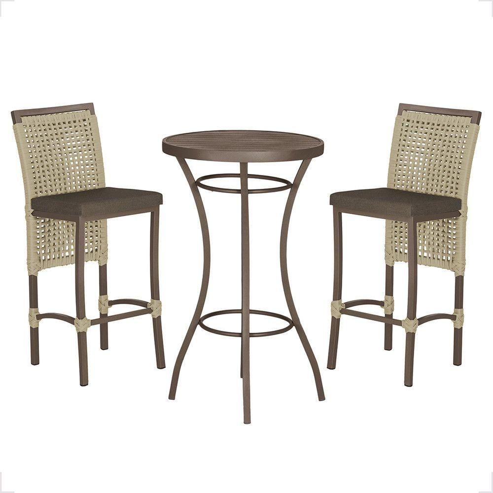 Mesa Bistrô E 2 Banquetas Roma Marrom Corda Estofado 9 Trama Rami