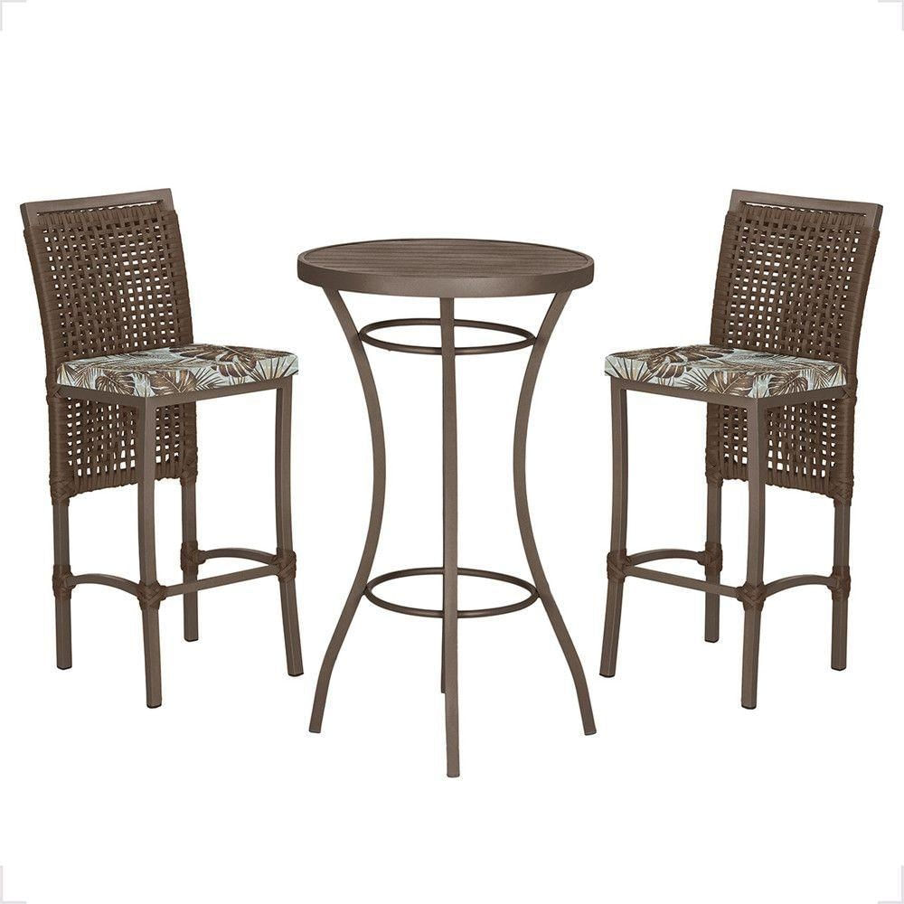 Mesa Bistrô E 2 Banquetas Roma Marrom Corda Estofado Trama Marrom