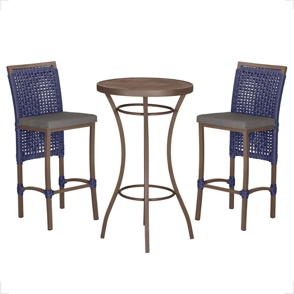 Mesa Bistro E 2 Banquetas Roma Marrom Corda Náutica 11 Azul