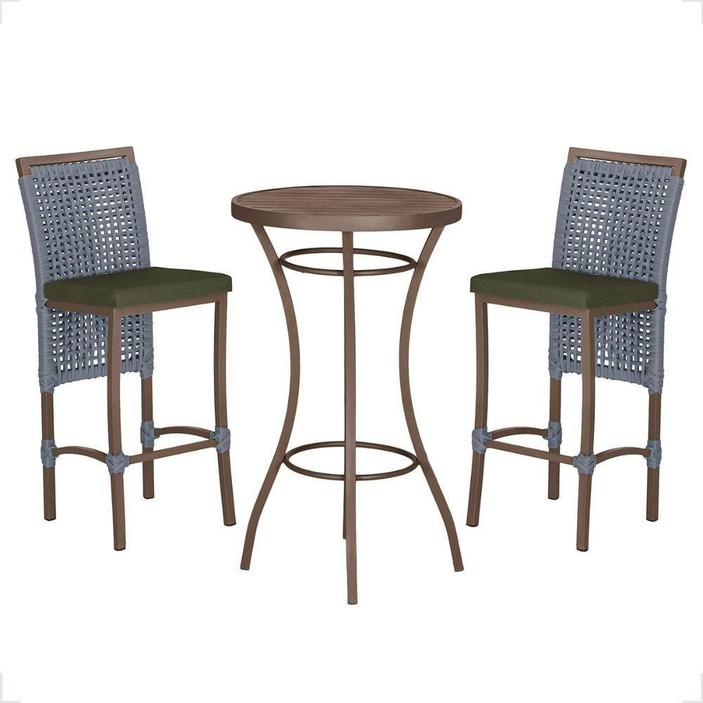 Mesa Bistro E 2 Banquetas Roma Marrom Corda Náutica 13 Prata