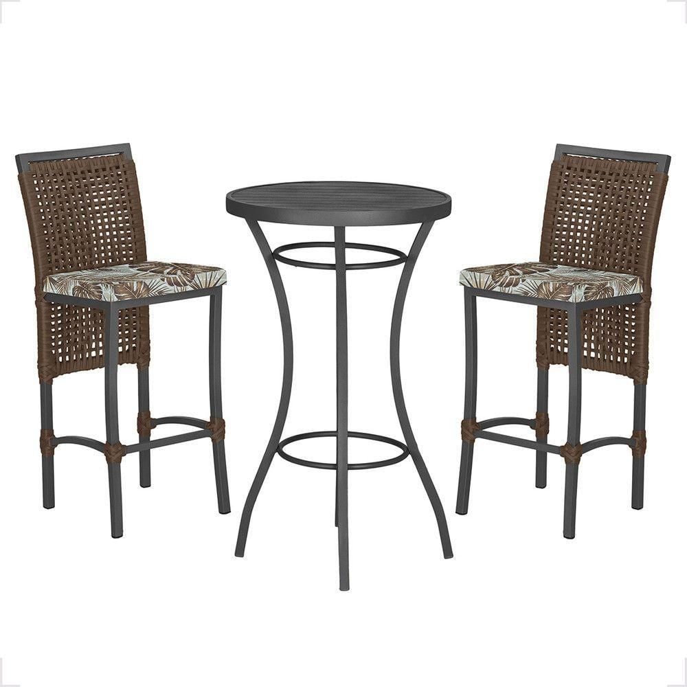 Mesa Bistrô E 2 Banquetas Roma Preta Corda Estofado 6 Trama Marrom