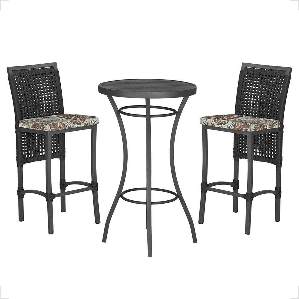 Mesa Bistrô E 2 Banquetas Roma Preta Corda Estofado 6 Trama Preto