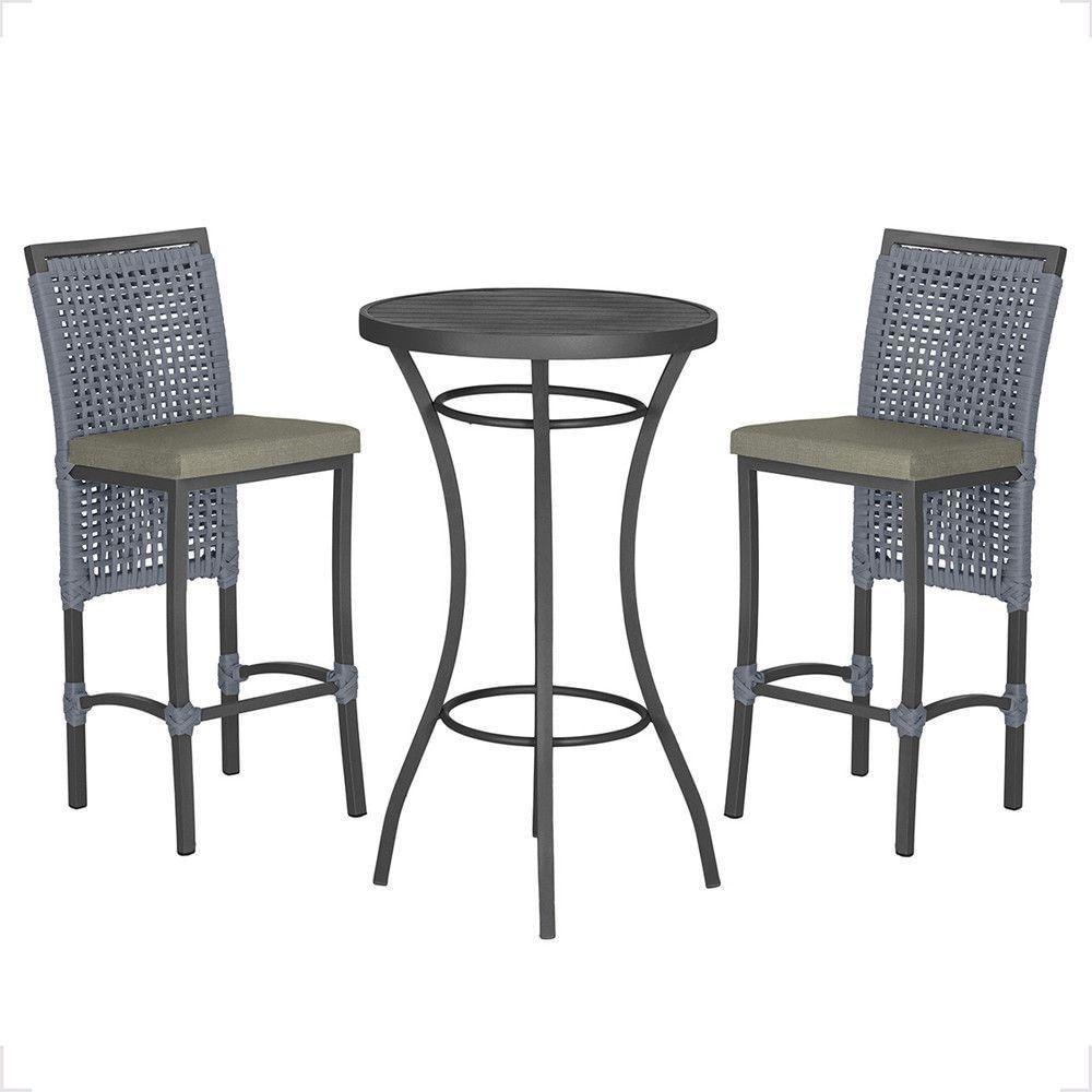 Mesa Bistrô E 2 Banquetas Roma Preta Corda Estofado 7 Trama Prata