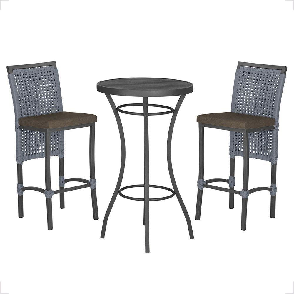 Mesa Bistrô E 2 Banquetas Roma Preta Corda Estofado 9 Trama Prata