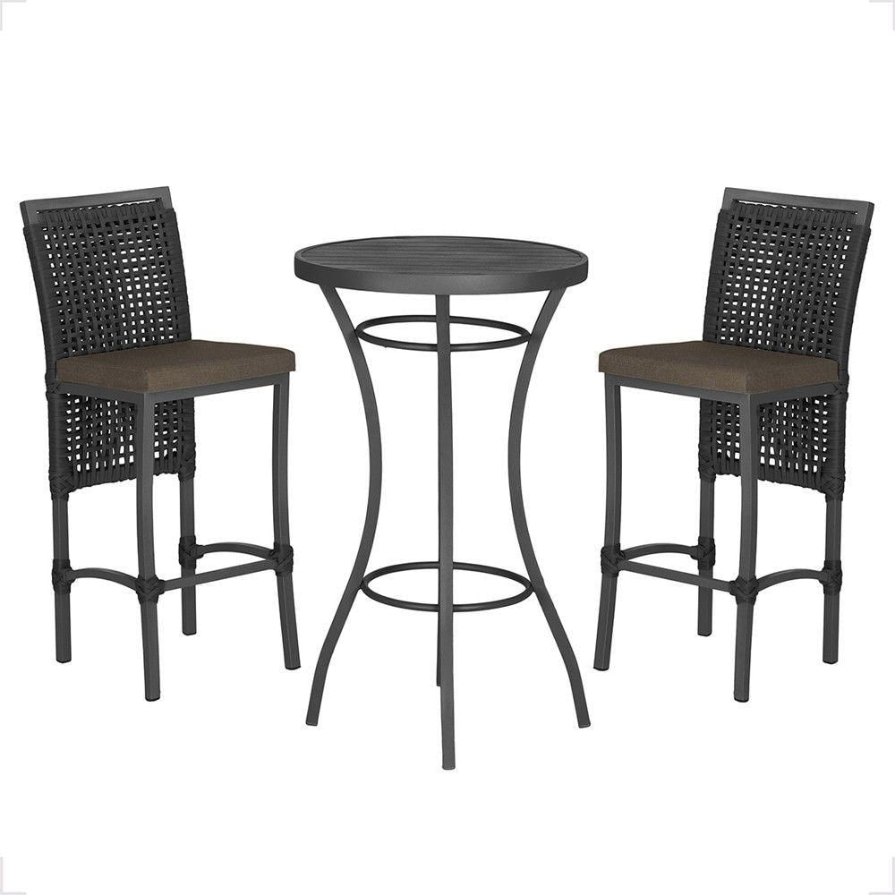 Mesa Bistrô E 2 Banquetas Roma Preta Corda Estofado 9 Trama Preto