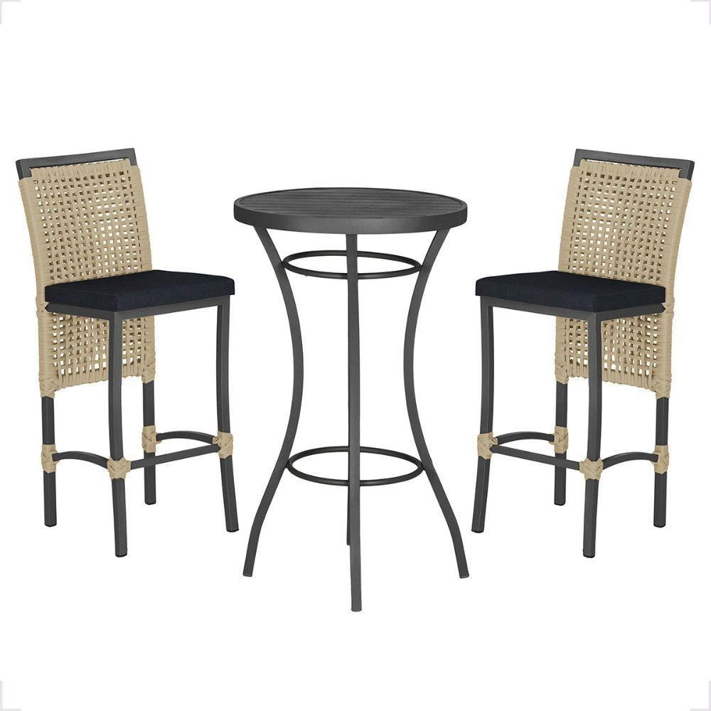 Mesa Bistro E 2 Banquetas Roma Preta Corda Náutica 12 Rami