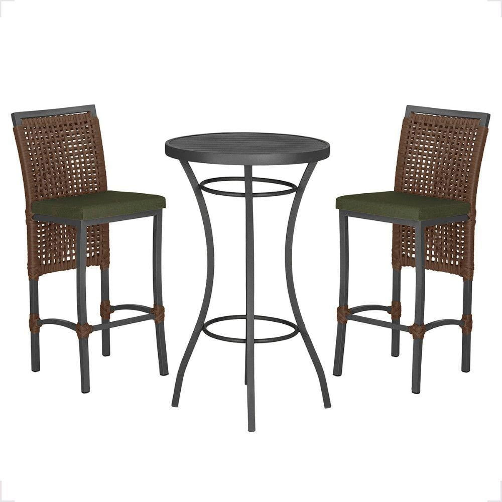 Mesa Bistro E 2 Banquetas Roma Preta Corda Náutica 13 Trama Marrom