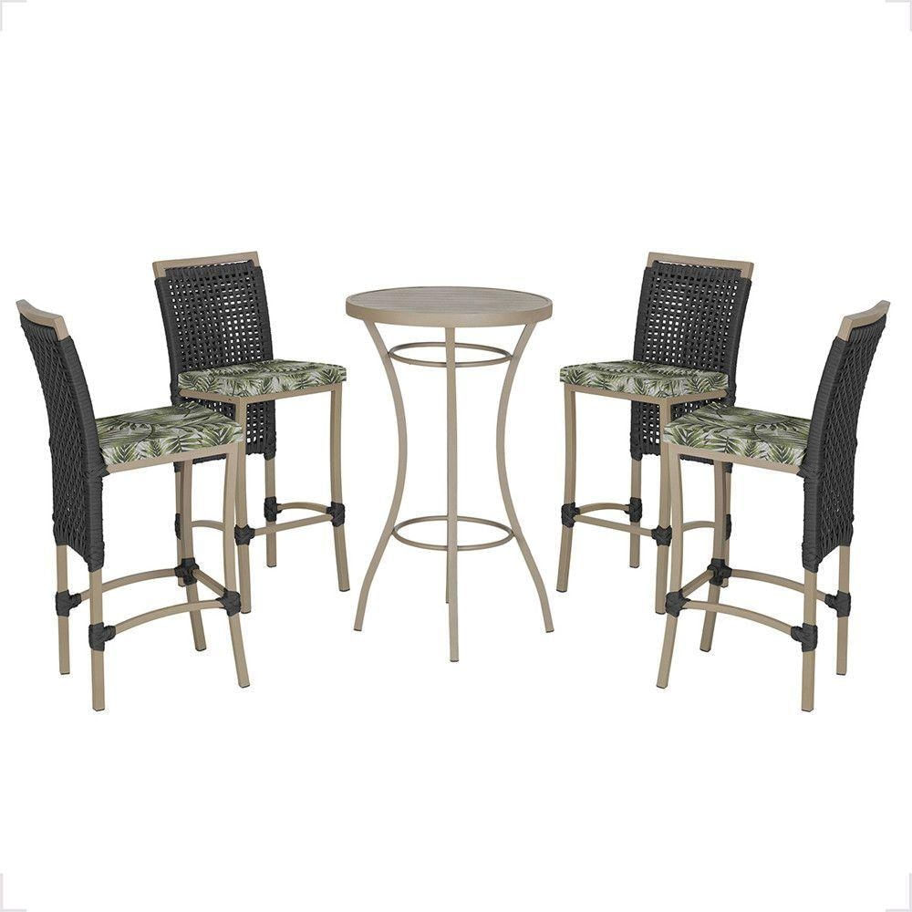 Mesa Bistrô E 4 Banquetas Roma Fendi Corda Estofado 5 Trama Preto