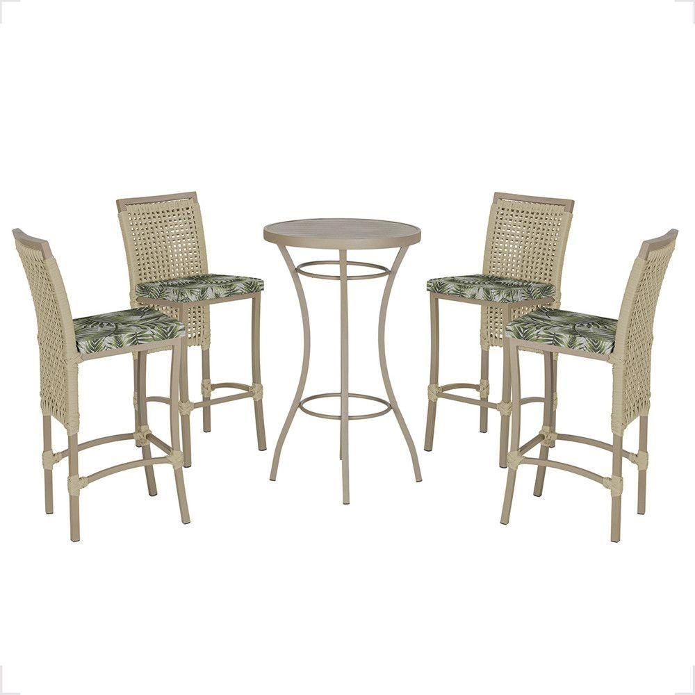 Mesa Bistrô E 4 Banquetas Roma Fendi Corda Estofado 5 Trama Rami