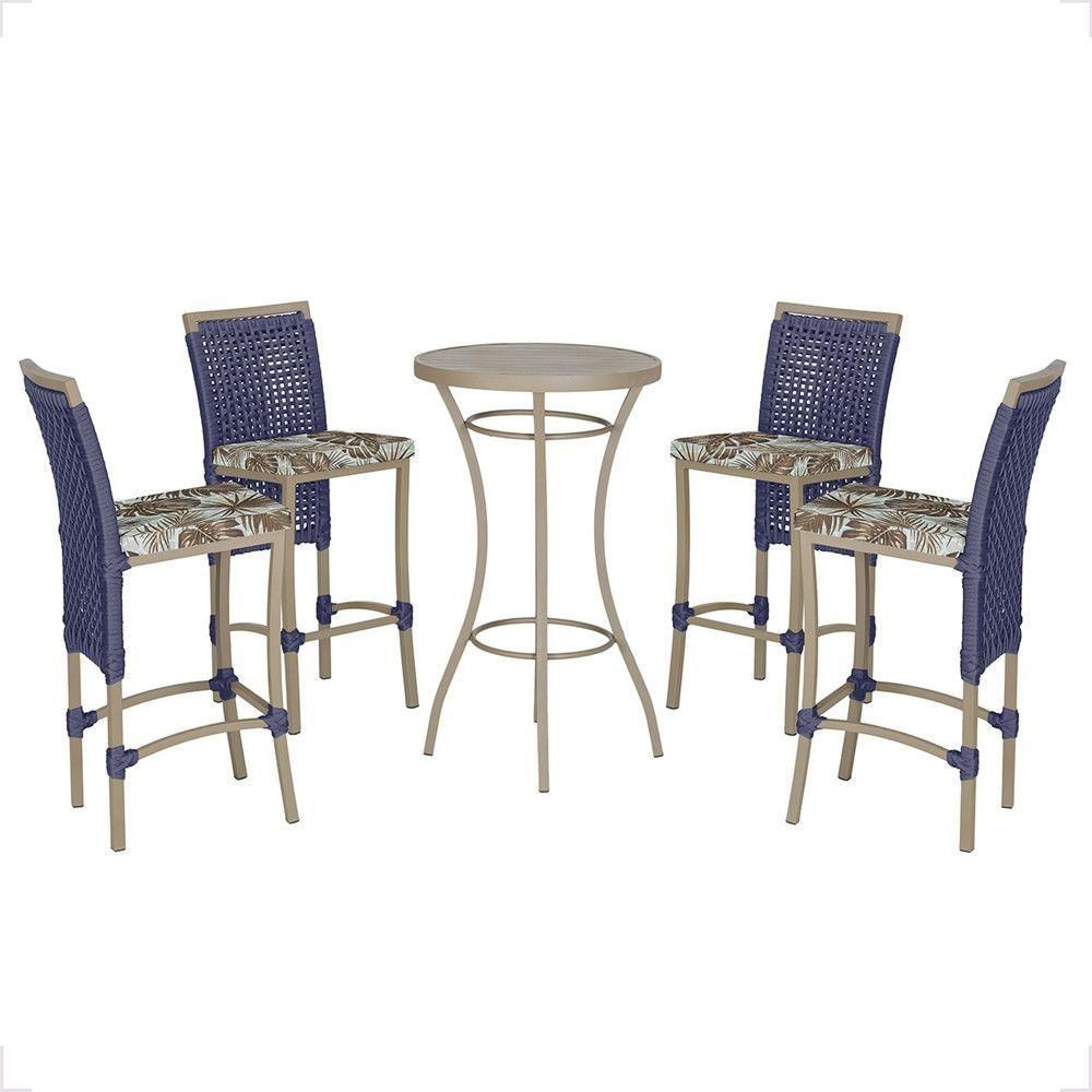 Mesa Bistrô E 4 Banquetas Roma Fendi Corda Estofado 6 Trama Azul
