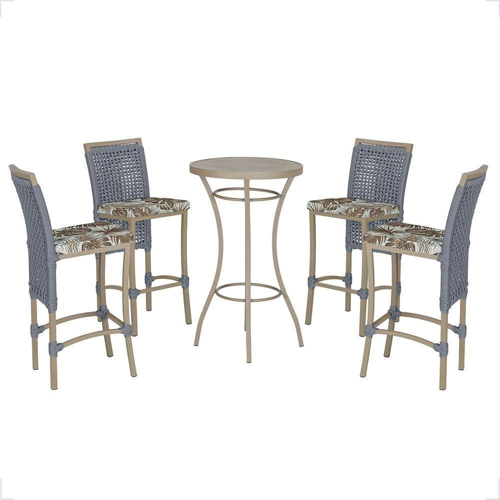 Mesa Bistrô E 4 Banquetas Roma Fendi Corda Estofado 6 Trama Prata