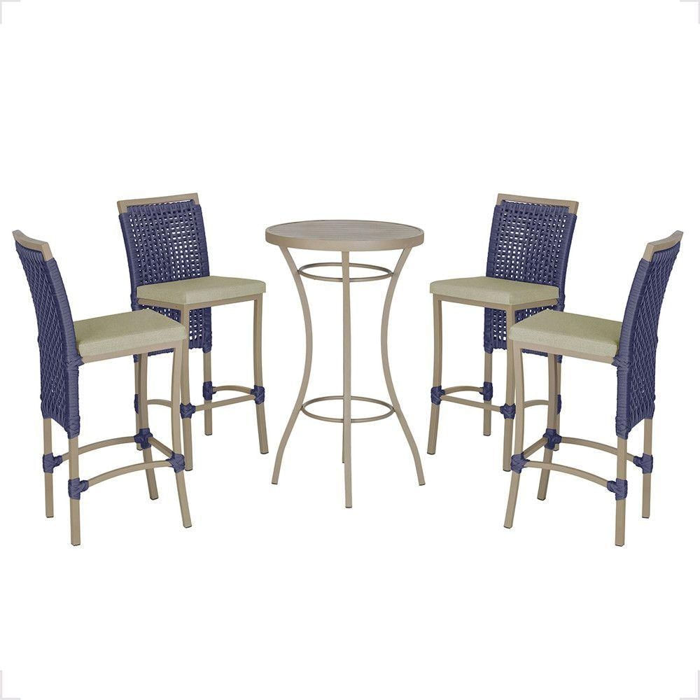 Mesa Bistrô E 4 Banquetas Roma Fendi Corda Estofado 7 Trama Azul