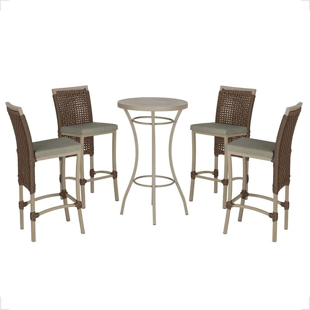 Mesa Bistrô E 4 Banquetas Roma Fendi Corda Estofado 8 Trama Marrom