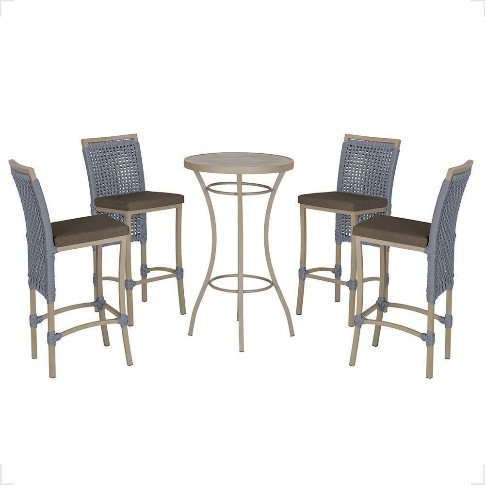 Mesa Bistrô E 4 Banquetas Roma Fendi Corda Estofado 9 Trama Prata