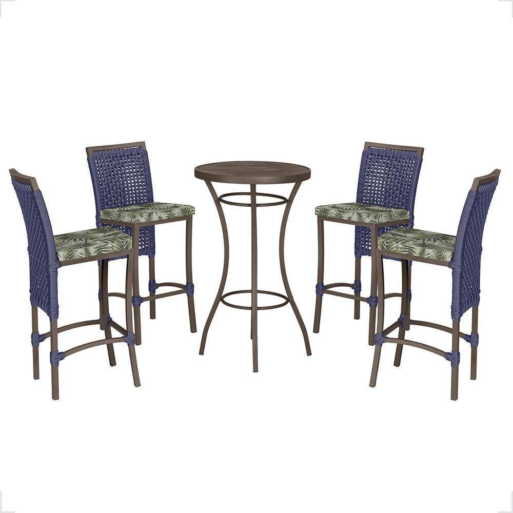 Mesa Bistrô E 4 Banquetas Roma Marrom Corda Estofado 5 Trama Azul