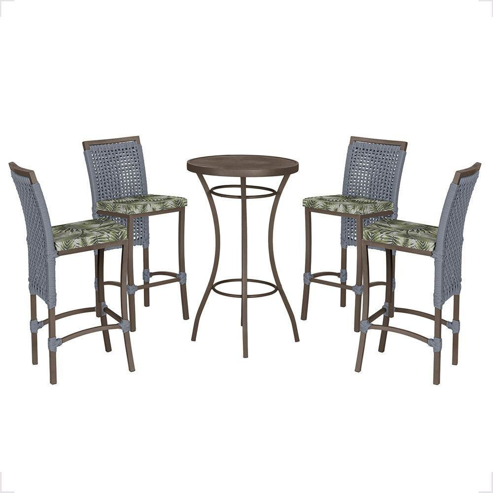Mesa Bistrô E 4 Banquetas Roma Marrom Corda Estofado 5 Trama Prata