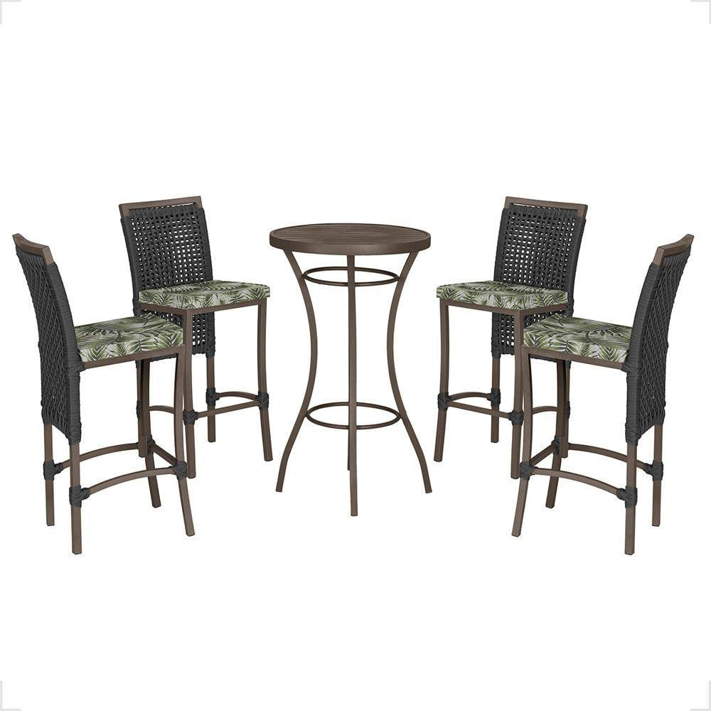 Mesa Bistrô E 4 Banquetas Roma Marrom Corda Estofado 5 Trama Preto