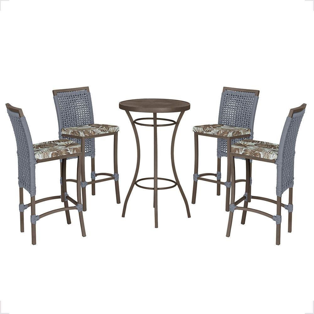 Mesa Bistrô E 4 Banquetas Roma Marrom Corda Estofado 6 Trama Prata