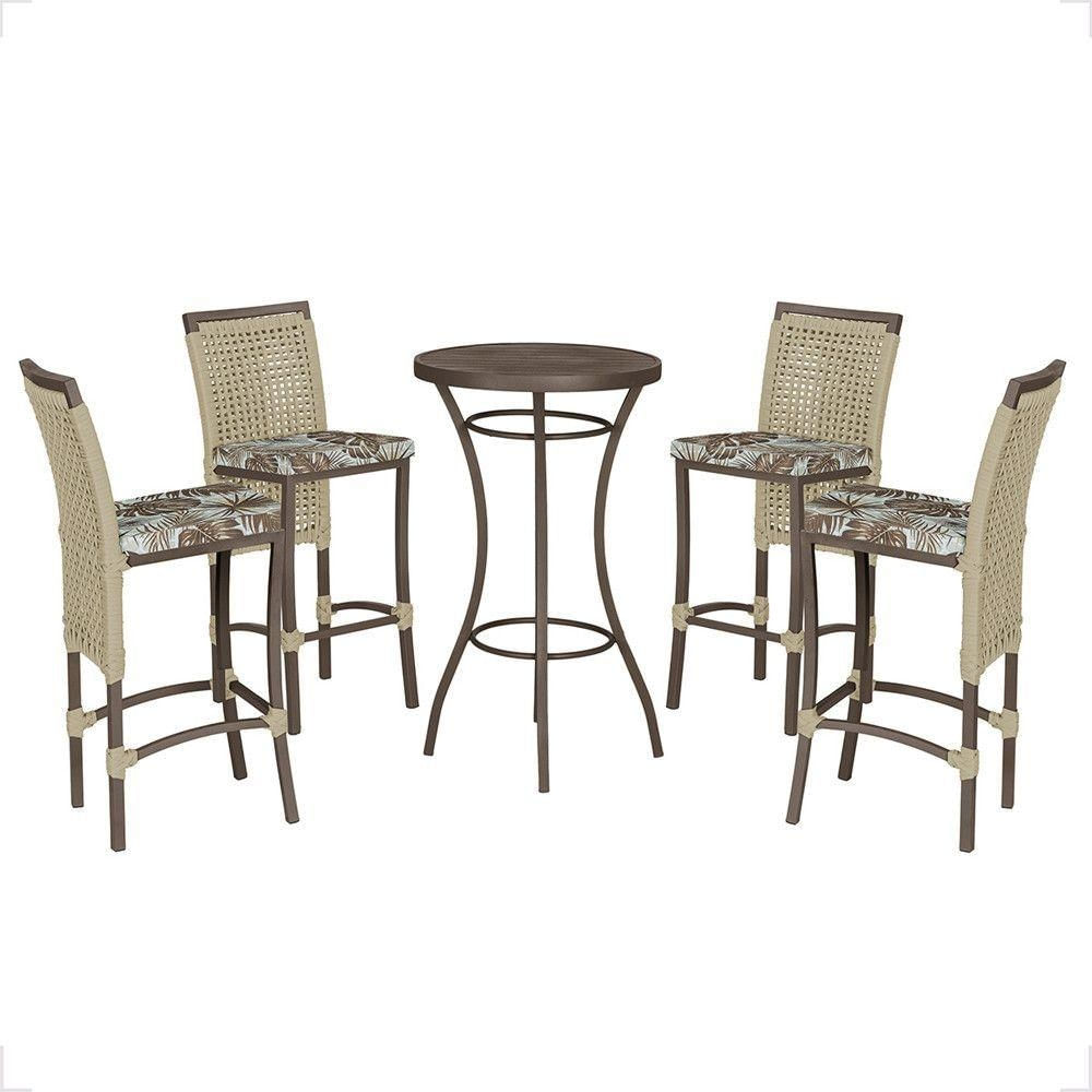 Mesa Bistrô E 4 Banquetas Roma Marrom Corda Estofado 6 Trama Rami