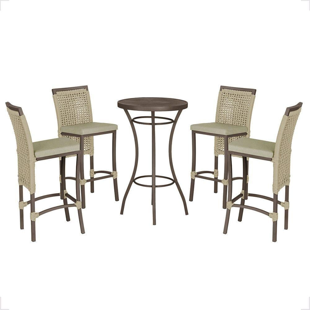 Mesa Bistrô E 4 Banquetas Roma Marrom Corda Estofado 7 Trama Rami