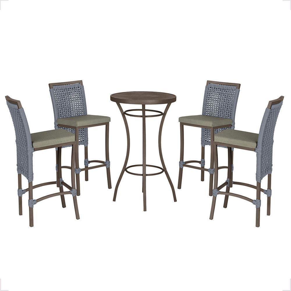 Mesa Bistrô E 4 Banquetas Roma Marrom Corda Estofado 8 Trama Prata