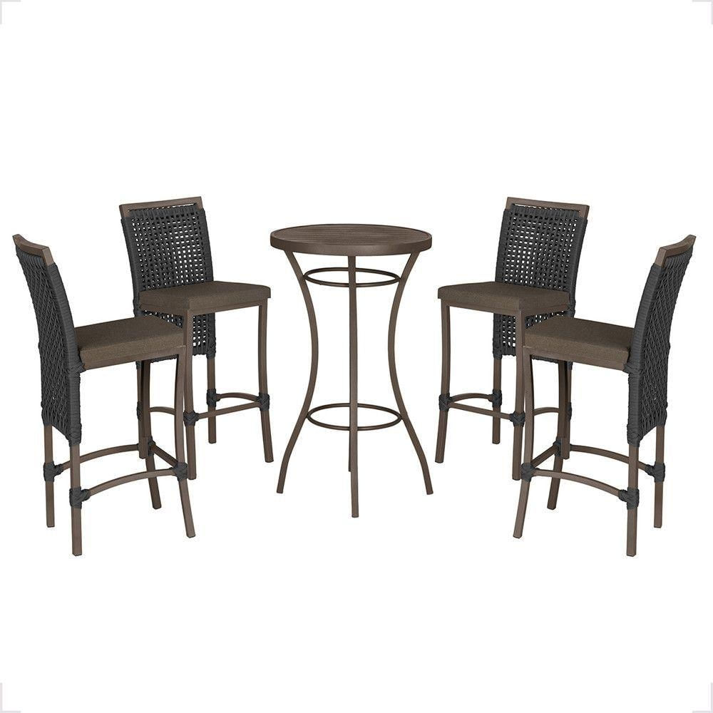 Mesa Bistrô E 4 Banquetas Roma Marrom Corda Estofado 9 Trama Preto