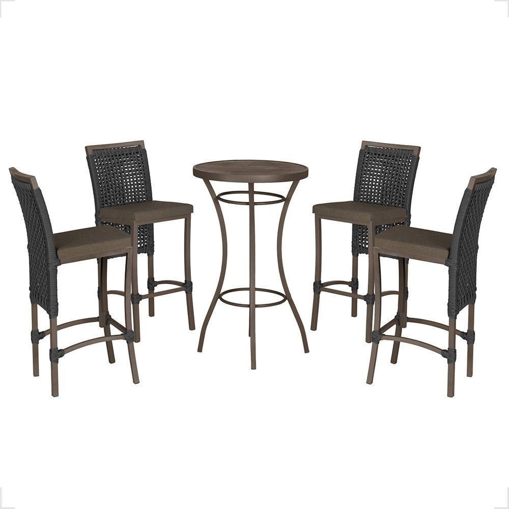 Mesa Bistrô E 4 Banquetas Roma Marrom Corda Estofado 9 Trama Preto