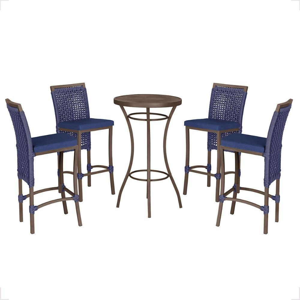 Mesa Bistro E 4 Banquetas Roma Marrom, Corda Náutica 10 Azul