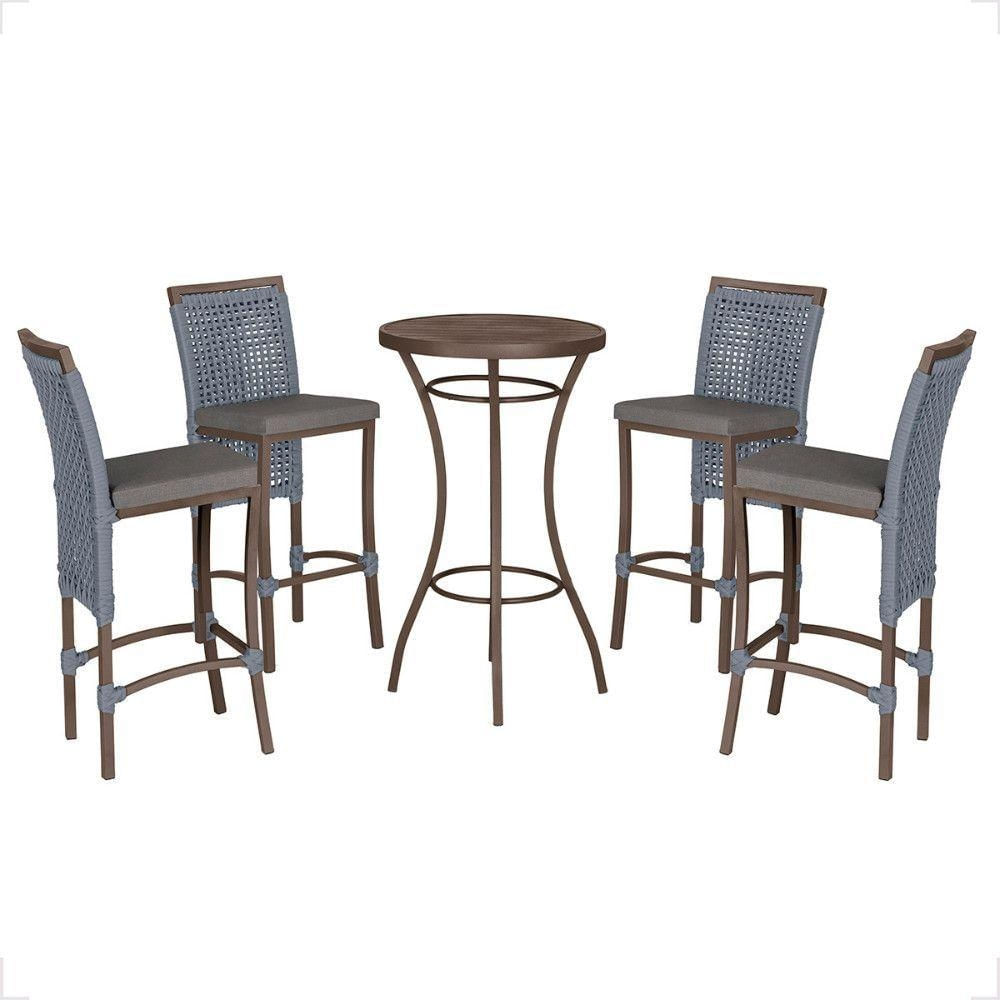 Mesa Bistro E 4 Banquetas Roma Marrom Corda Náutica 11 Prata
