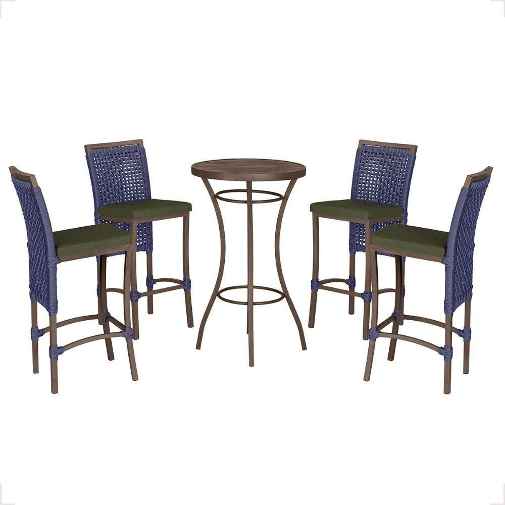 Mesa Bistro E 4 Banquetas Roma Marrom Corda Náutica 13 Azul