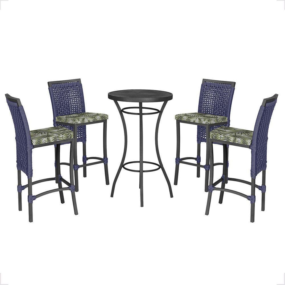 Mesa Bistrô E 4 Banquetas Roma Preta Corda Estofado 5 Trama Azul