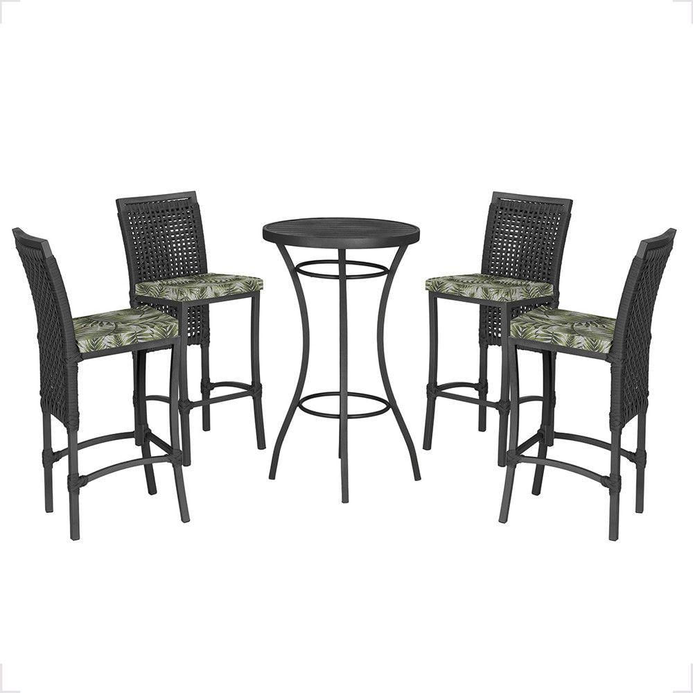 Mesa Bistrô E 4 Banquetas Roma Preta Corda Estofado 5 Trama Preto