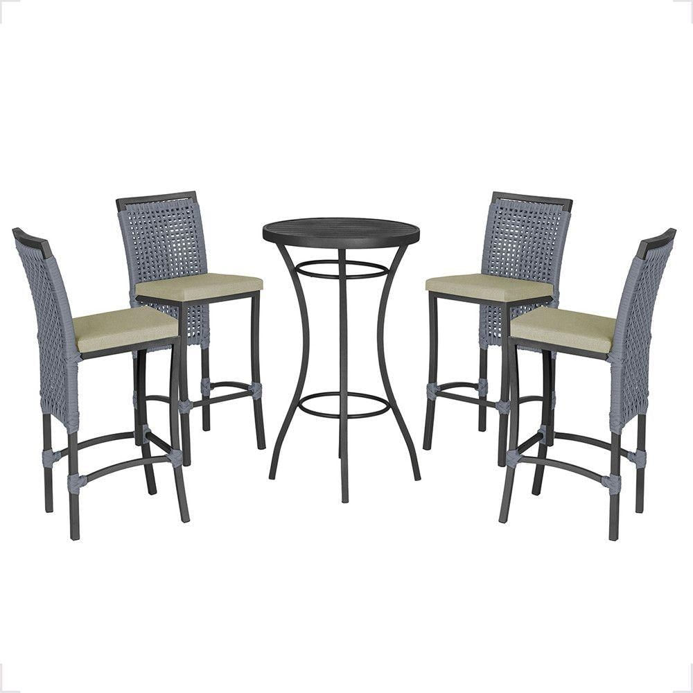 Mesa Bistrô E 4 Banquetas Roma Preta, Corda Estofado 7 Trama Prata