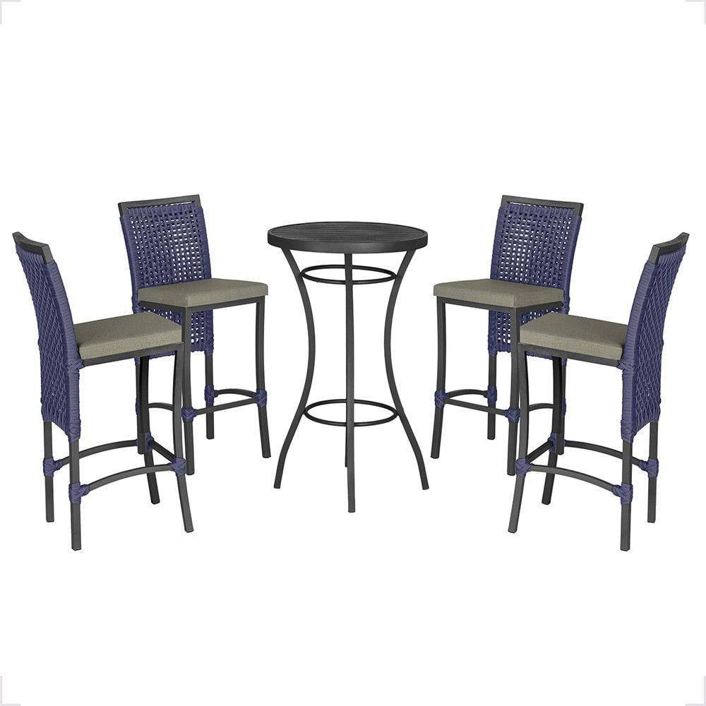 Mesa Bistrô E 4 Banquetas Roma Preta Corda Estofado 8 Trama Azul