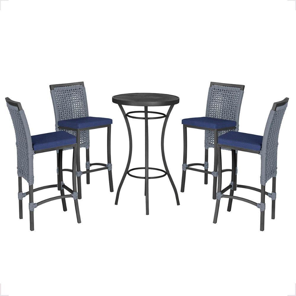 Mesa Bistro E 4 Banquetas Roma Preta Corda Náutica 10 Prata