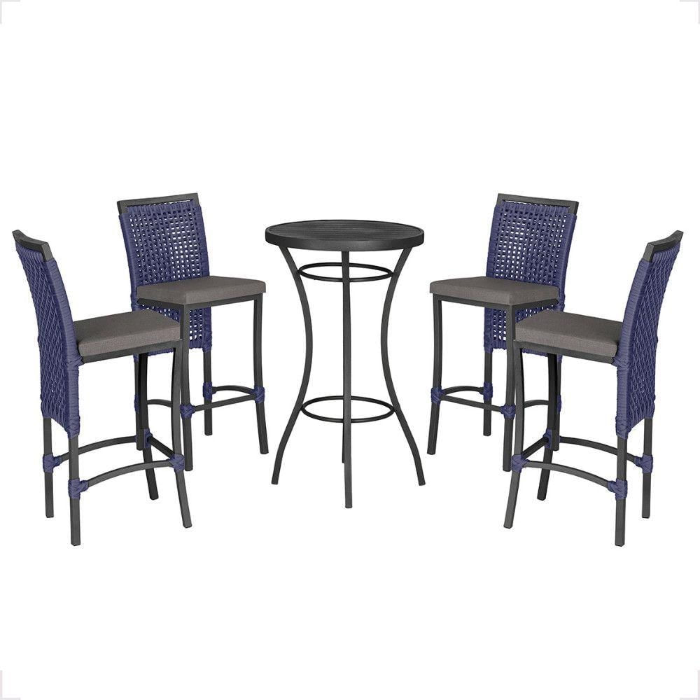 Mesa Bistro E 4 Banquetas Roma Preta Corda Náutica 11 Azul