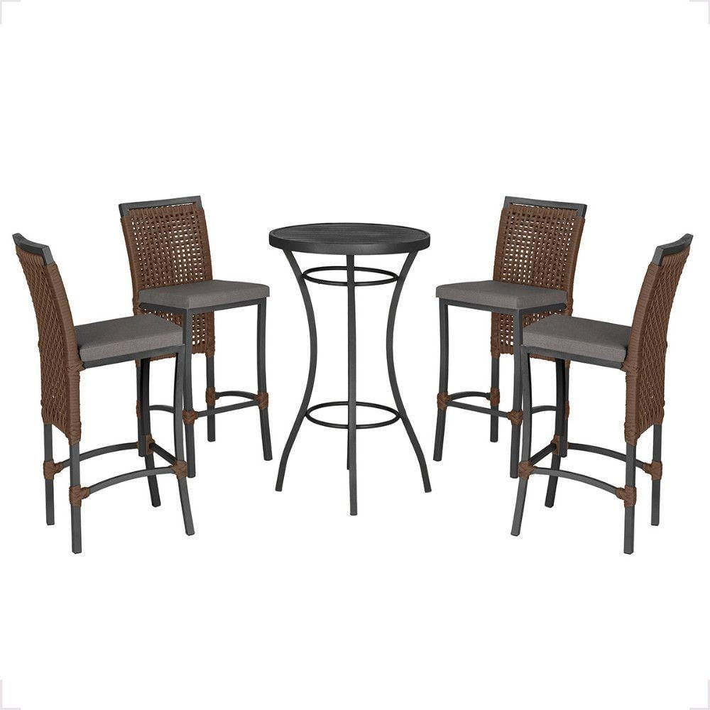 Mesa Bistro E 4 Banquetas Roma Preta Corda Náutica 11 Marrom