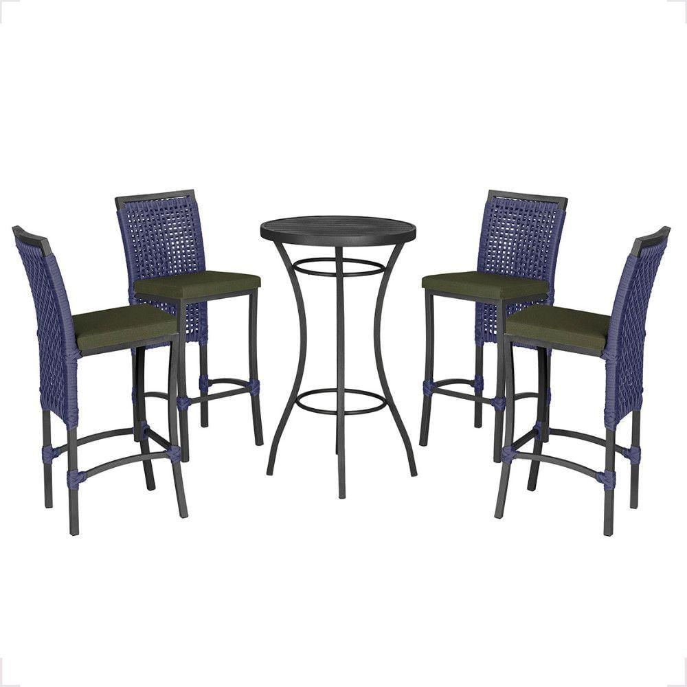 Mesa Bistro E 4 Banquetas Roma Preta Corda Náutica 12 Azul