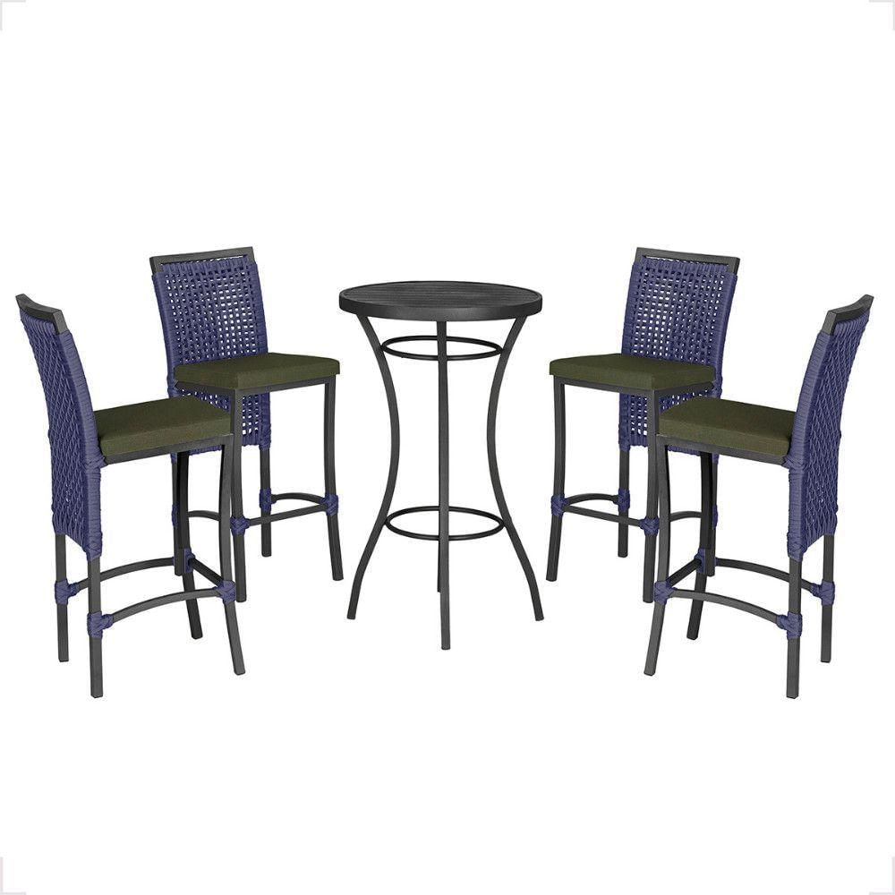 Mesa Bistro E 4 Banquetas Roma Preta Corda Náutica 13 Azul