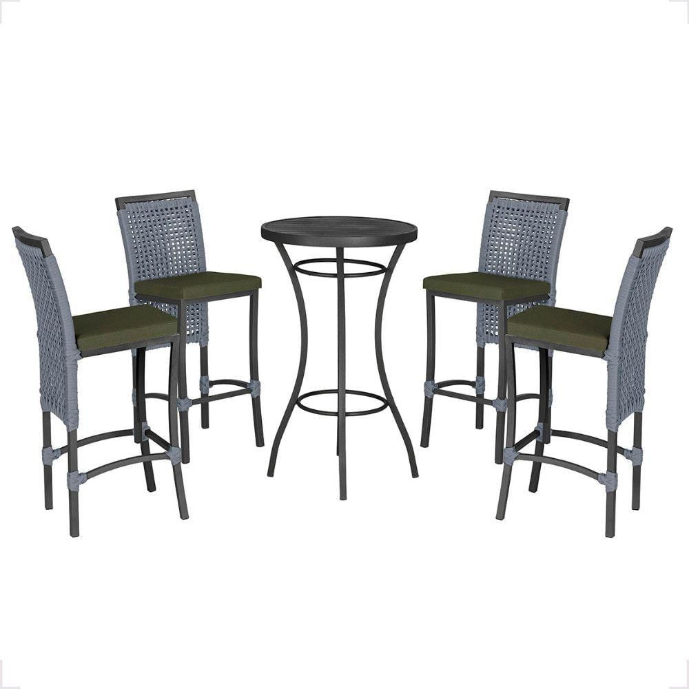 Mesa Bistro E 4 Banquetas Roma Preta Corda Náutica 13 Prata