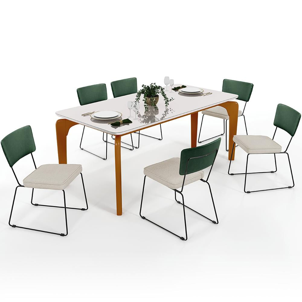Percebemos hoje mais do que nunca o quanto os momentos com a família e os amigos são imprescindíveis, as refeições os tornam memoráveis, são uma ótima maneira de reunir a todos e colecionar lembranças especiais. A Mesa Capri 160cm Off White E 6 Cadeiras Allana B05 Facto Verde Musgo Linho Champagne - Lyam Decor vem justamente com essa proposta, seu tampo com bordas suavemente arredondadas transmite suavidade e contrasta maravilhosamente com as estruturas de aço com pegada industrial.